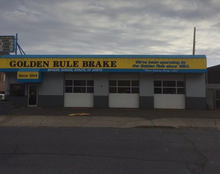 I was so happy to exit that motel but it wasn’t quite time to leave Spokane behind. I had to stop and get my brakes checked. I found a quaint old brake and muffler place on the way to the highway. I was concerned about a grinding noise coming from one of the wheels. I knew it was either a problem or it was a noise caused by the heat and those corrugated, concrete roads. The service was excellent. They checked the wheels and said everything was fine. They didn’t charge me anything. I was thrilled to find the normalcy of the brake and muffler shop.